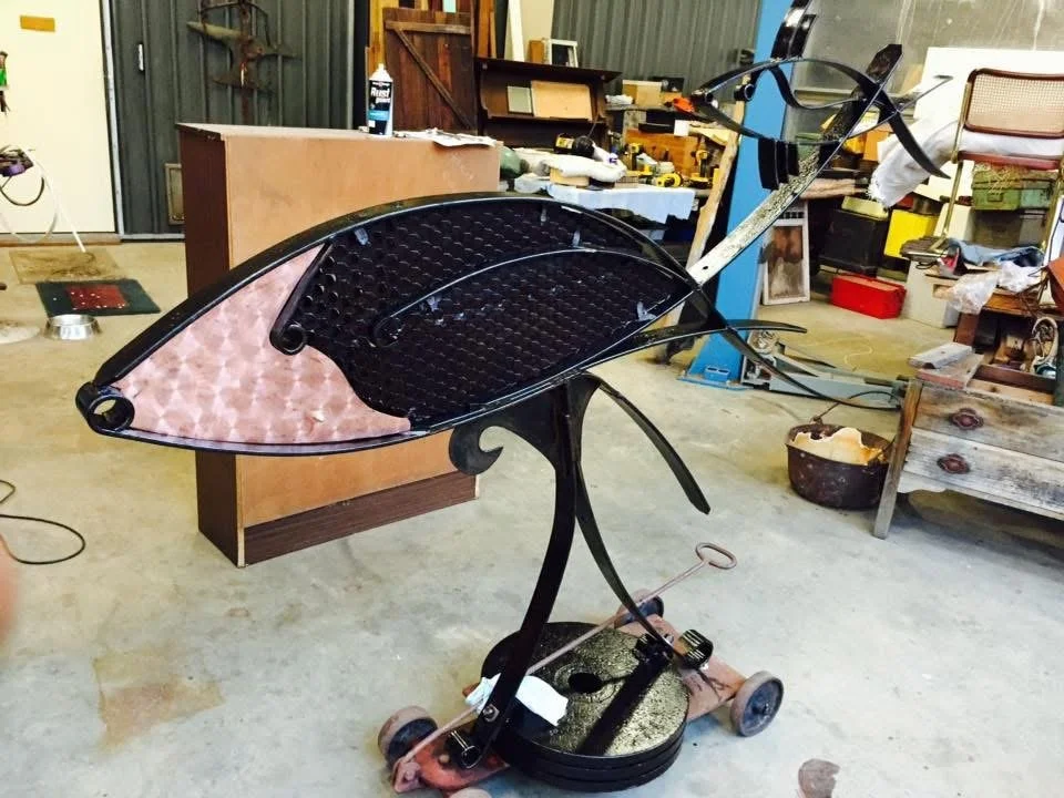 Nestled in Collie, Western Australia, Robert crafts striking metal and wood sculptures using repurposed machinery, tools, and natural timber.